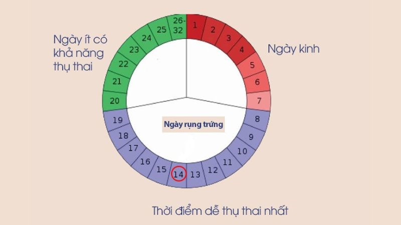 - Chu kỳ kinh đều 28 ngày: Ngày rụng trứng thường rơi vào khoảng ngày thứ 14 (tính từ ngày đầu tiên của kỳ kinh). Thời điểm dễ thụ thai nhất là từ ngày 12–15.