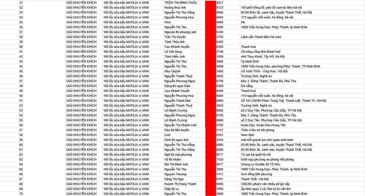 Bên cạnh 02 Giải Đặc Biệt, chương trình cũng đã tìm ra 128 khách hàng trúng các hạng mục giải thưởng còn lại. Chi tiết danh sách khách hàng trúng giải như sau: