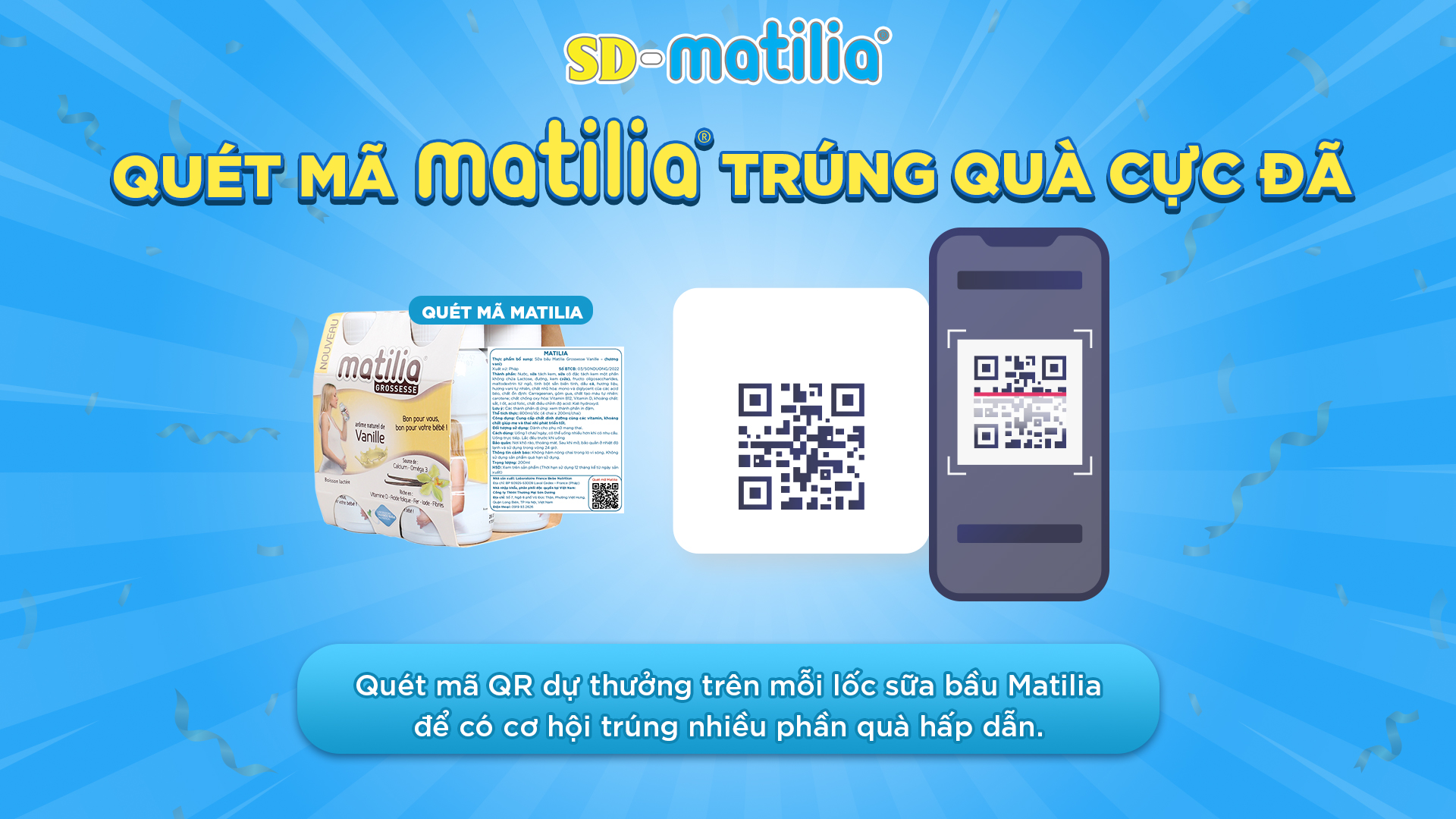 Mỗi lốc sữa bầu Matilia đều chứa mã QR dự thưởng giúp mẹ có cơ