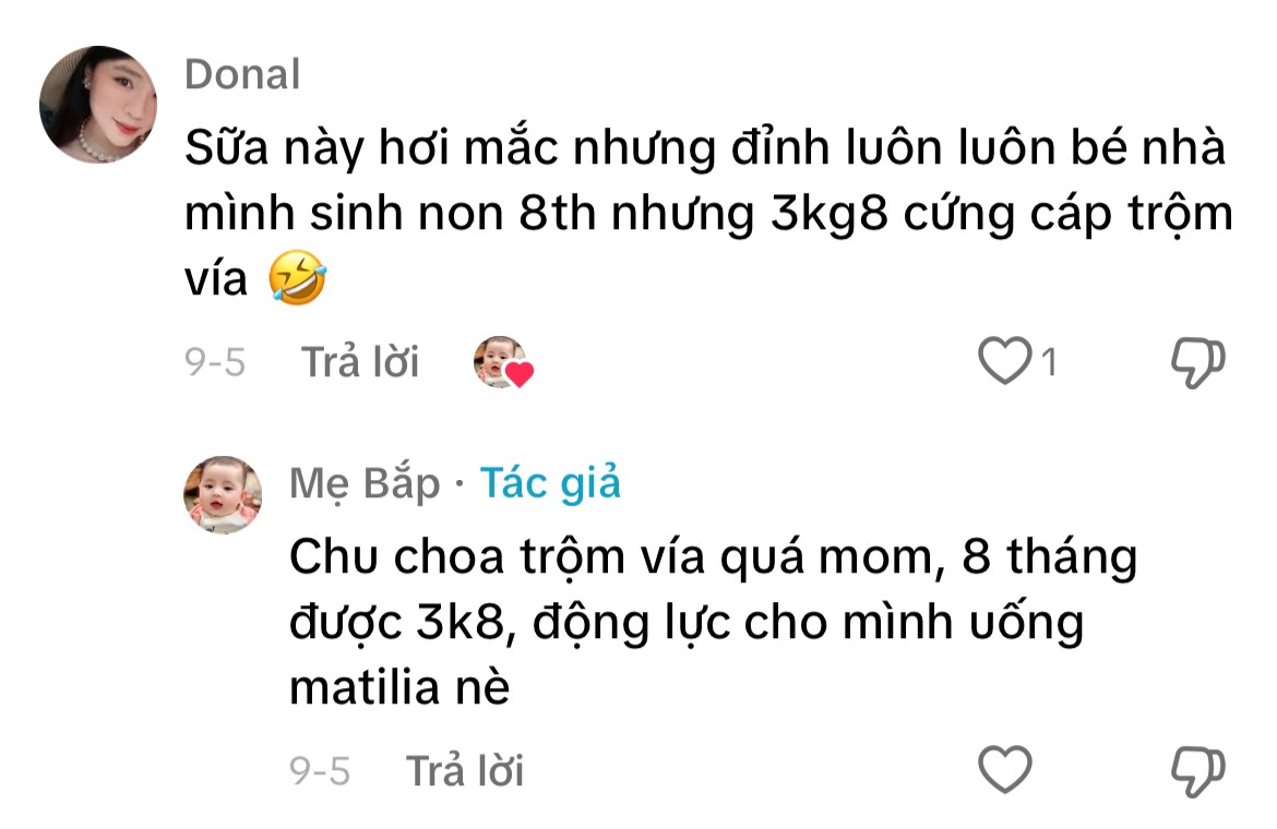 Bé tăng cân, mẹ khỏe mạnh, hương vị thơm ngon, dễ uống chính là những đánh giá tích cực từ người dùng dành cho sữa bầu Matilia. Có rất nhiều khách hàng dành những đánh giá tích cụ cho sữa bầu Matilia, cụ thể: