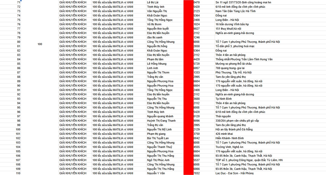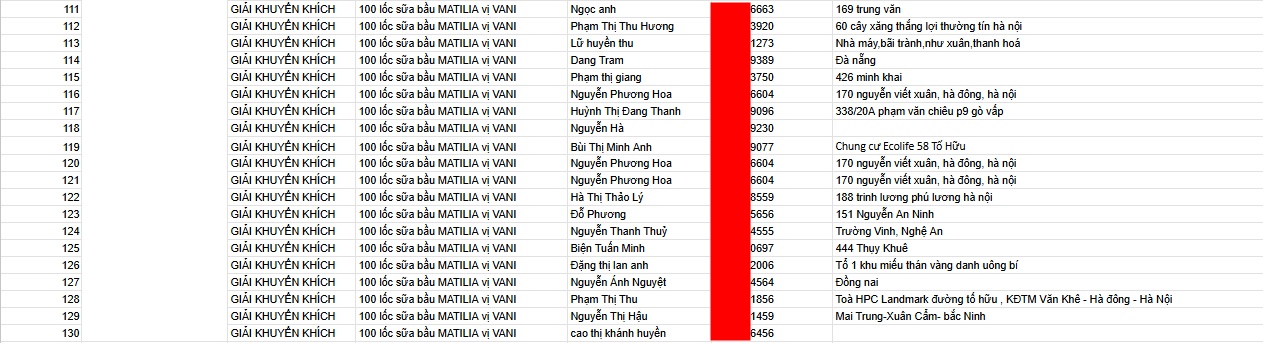 Bên cạnh 02 Giải Đặc Biệt, chương trình cũng đã tìm ra 128 khách hàng trúng các hạng mục giải thưởng còn lại. Chi tiết danh sách khách hàng trúng giải như sau: